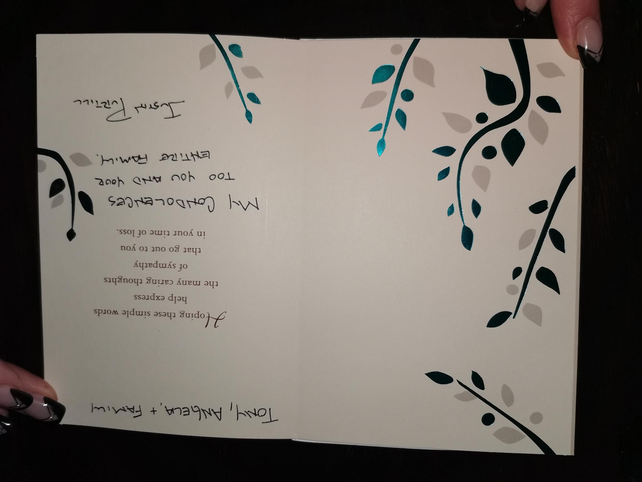 Many thanks and appreciation to Renee Frank for the beautiful flowers seen at the graveside and to everyone for the kind thoughts shared in their cards.